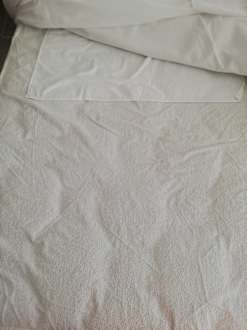 Dreckige Bettlaken mit Inkontinenzunterlage