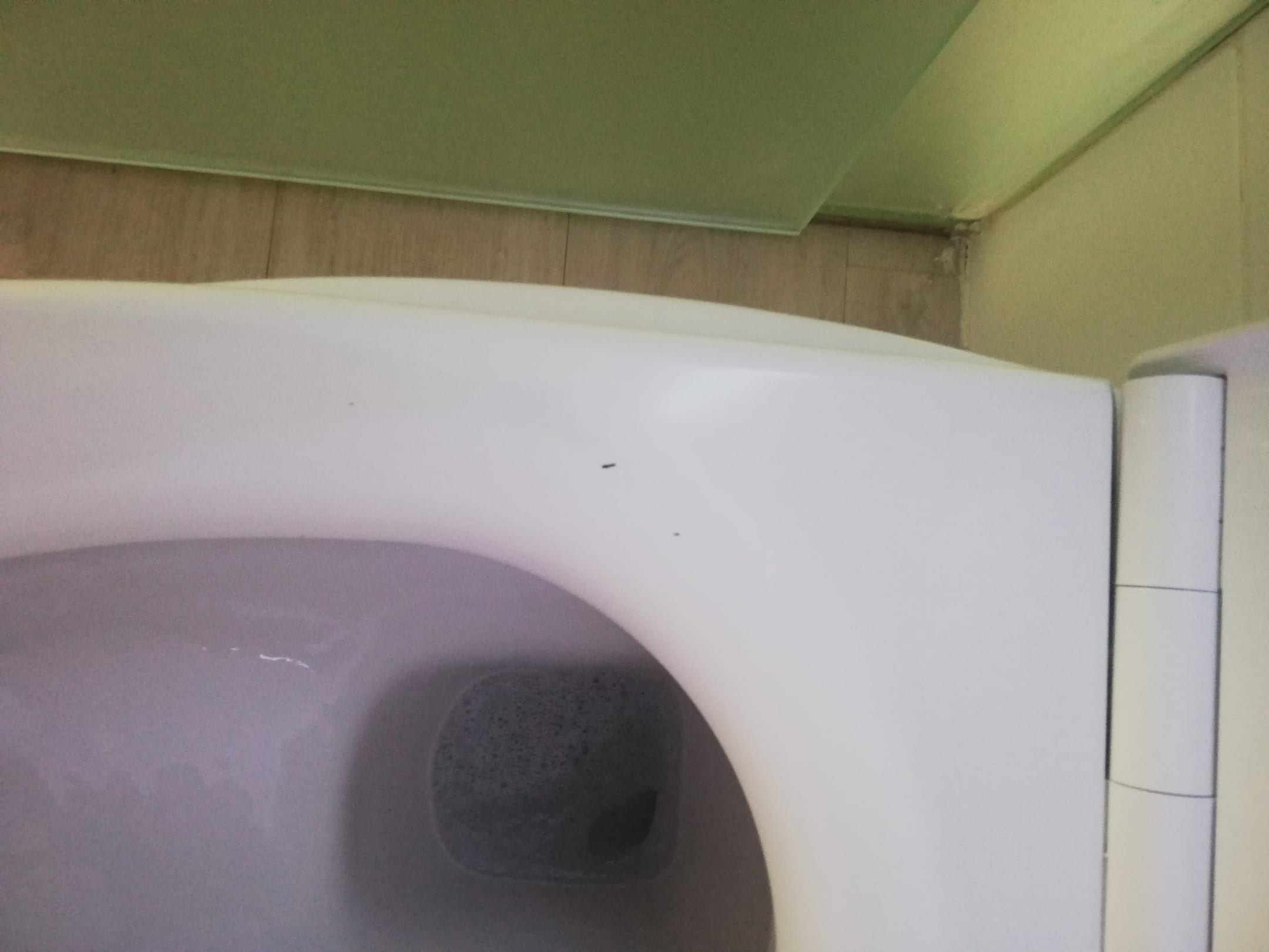 Beschädigte Toilette und verschimmeltes Silikon.