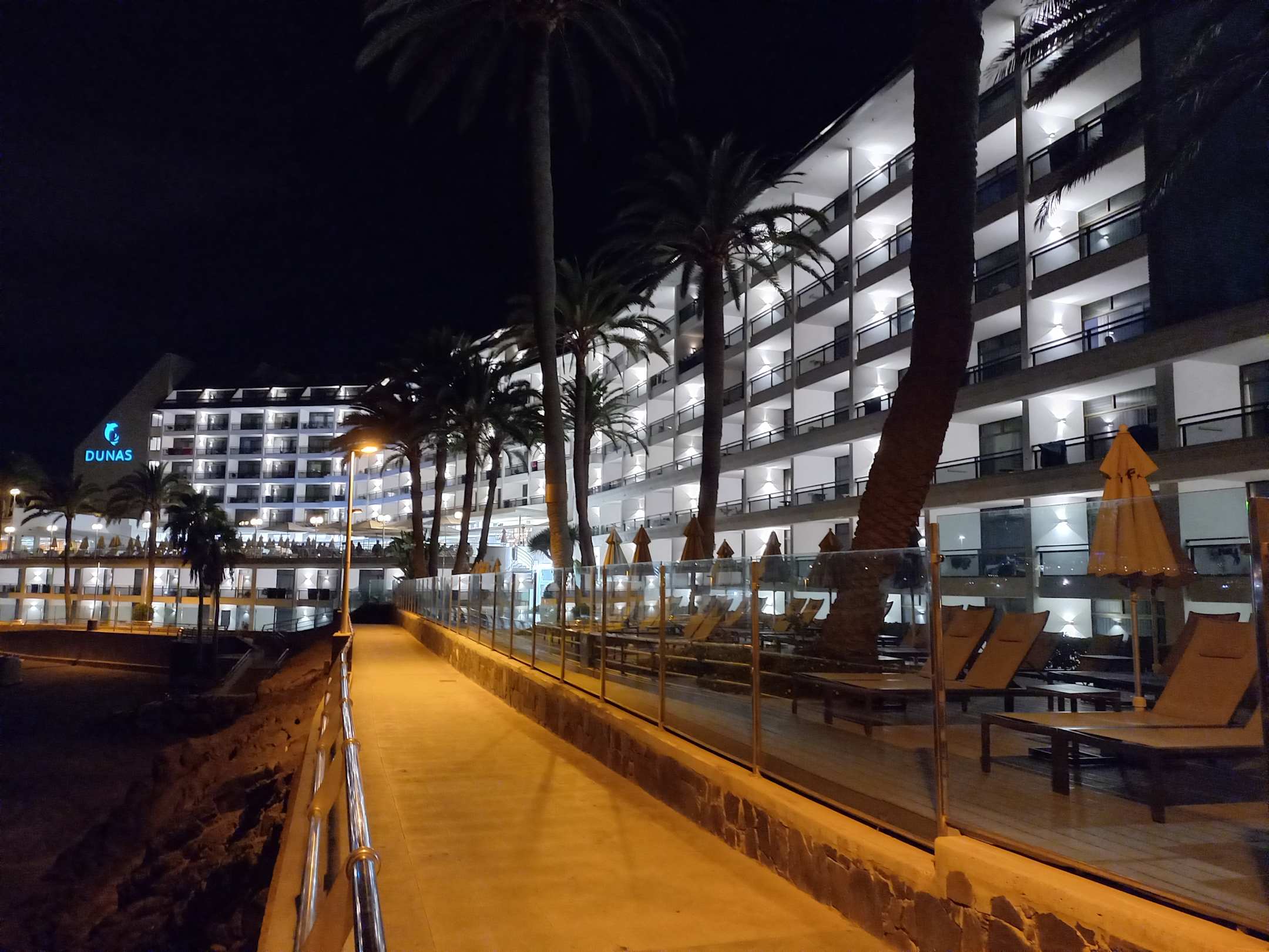 Außenansicht vom Strand her . Alle Zimmer haben Meerblick