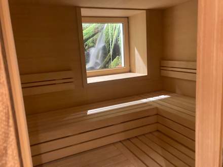 Finnische Sauna mit einzigartiger Fensterbeklebung