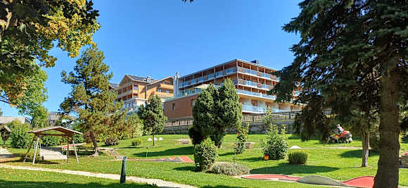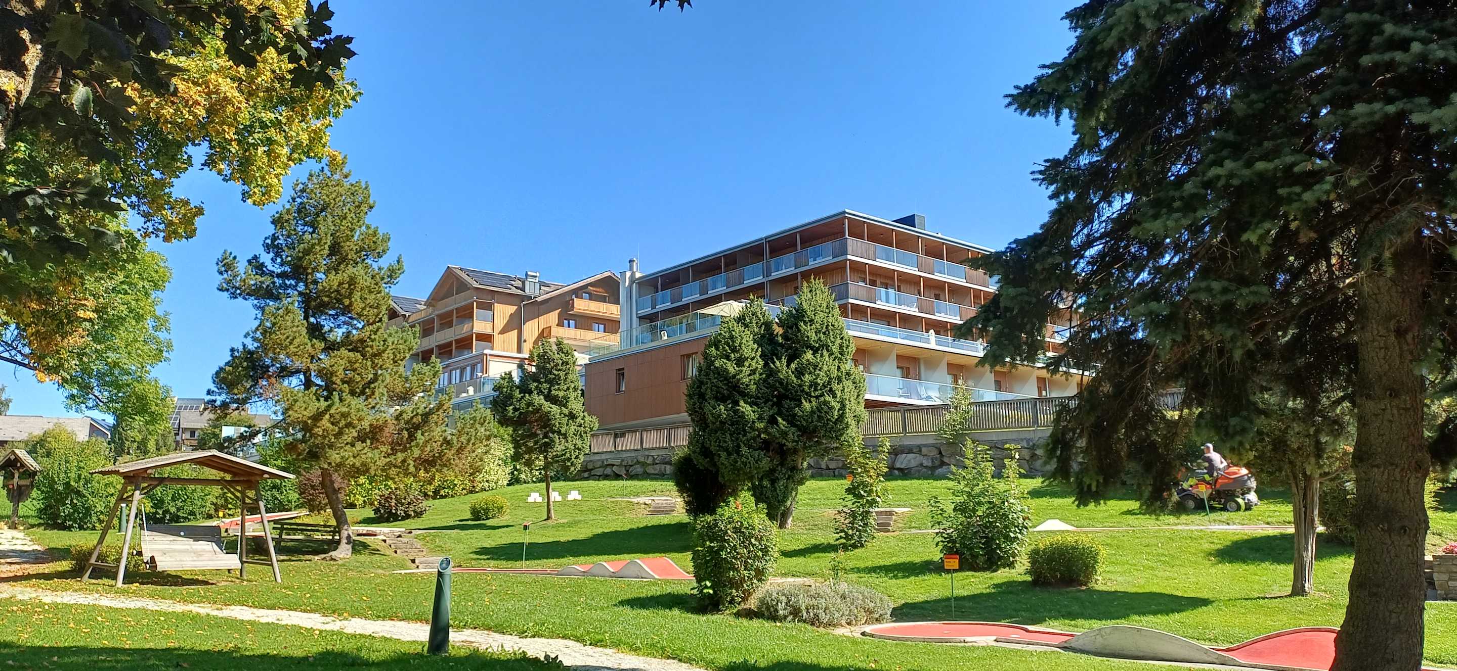 Blick zum Hotel. Vom Minigolfplatz aus