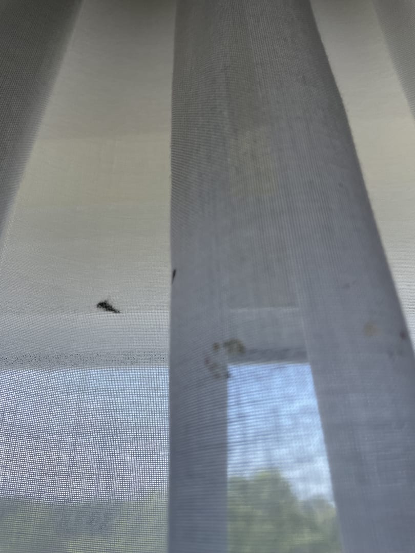 dreckige und teilweise zerrissene Gardinen