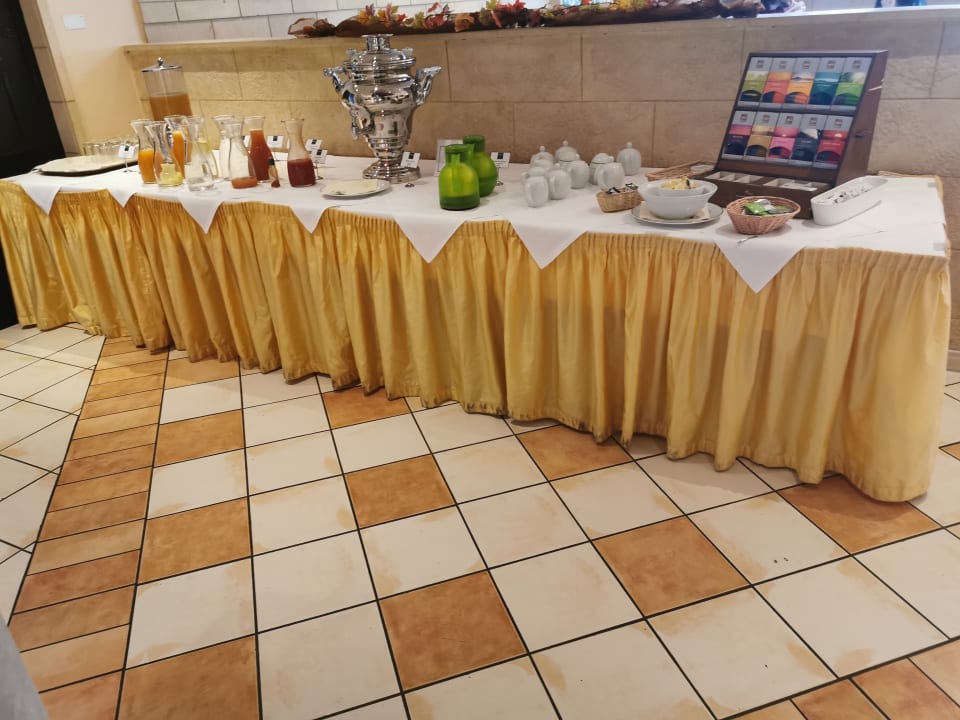 6 verschiedene Säfte, Tee und Kakao .