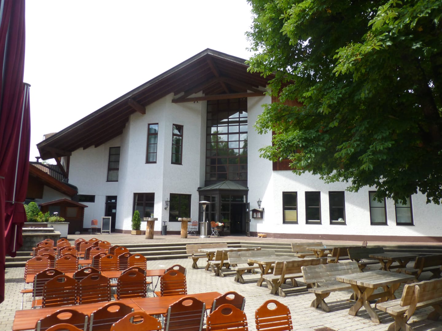 Biergarten im Hintergrund das Haupthaus
