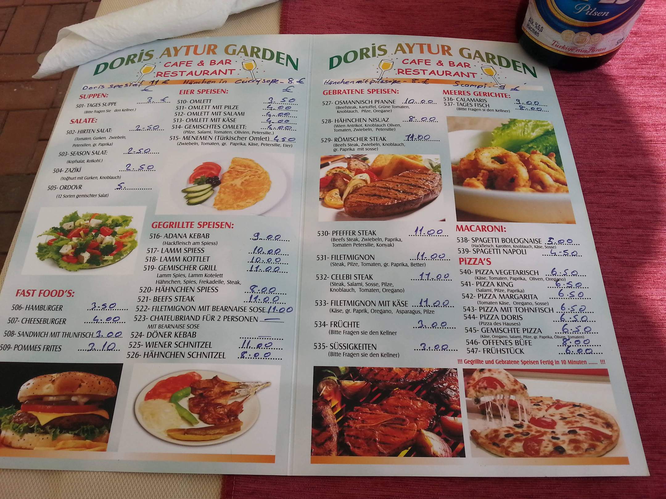 Speisekarte für Pool und Beachbar