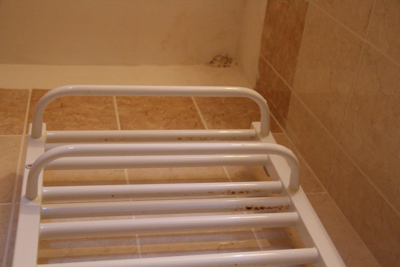 Grzyb w łazience, gnijący, brudny grzejnik