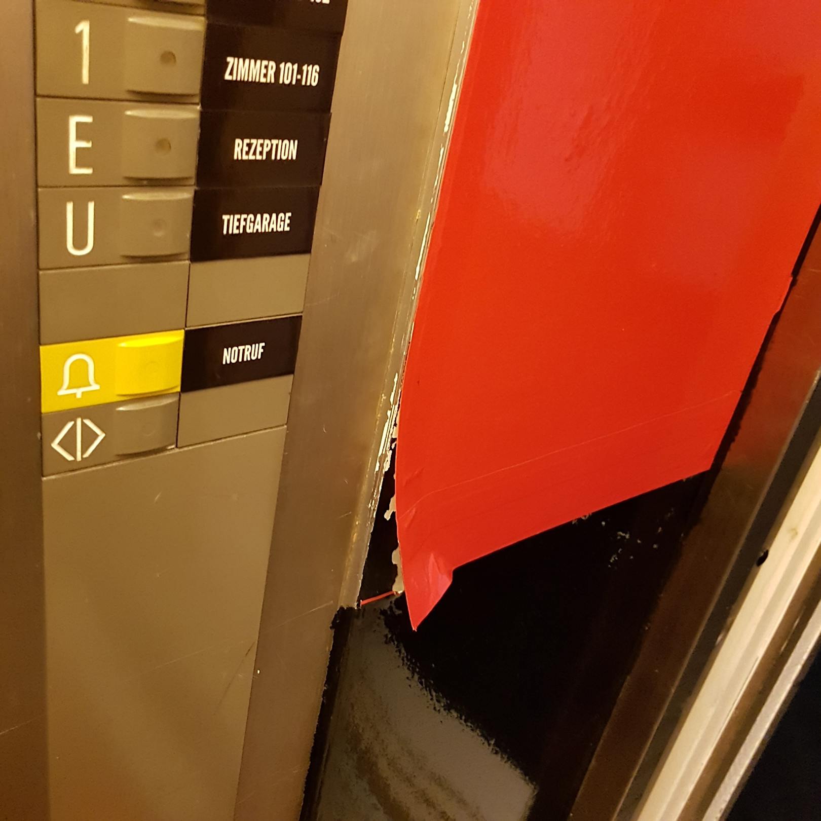 Aufzugwände nicht gestrichen, einfach dick mit Klebeband beklebt