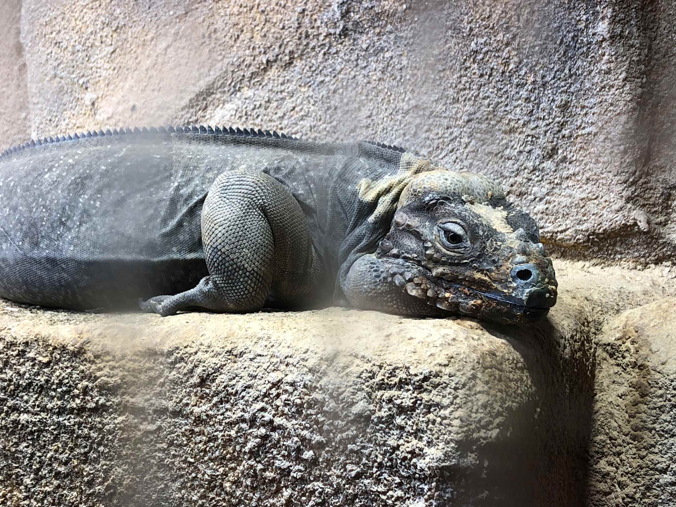 Die Nashornleguane "Paula" und "Kai Uwe" im Eingangsbereich