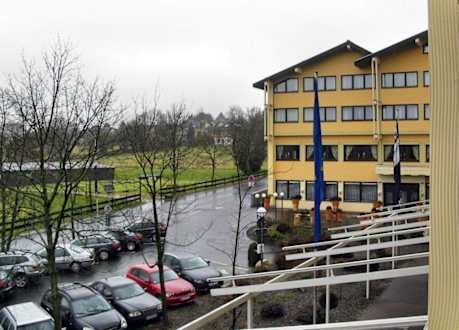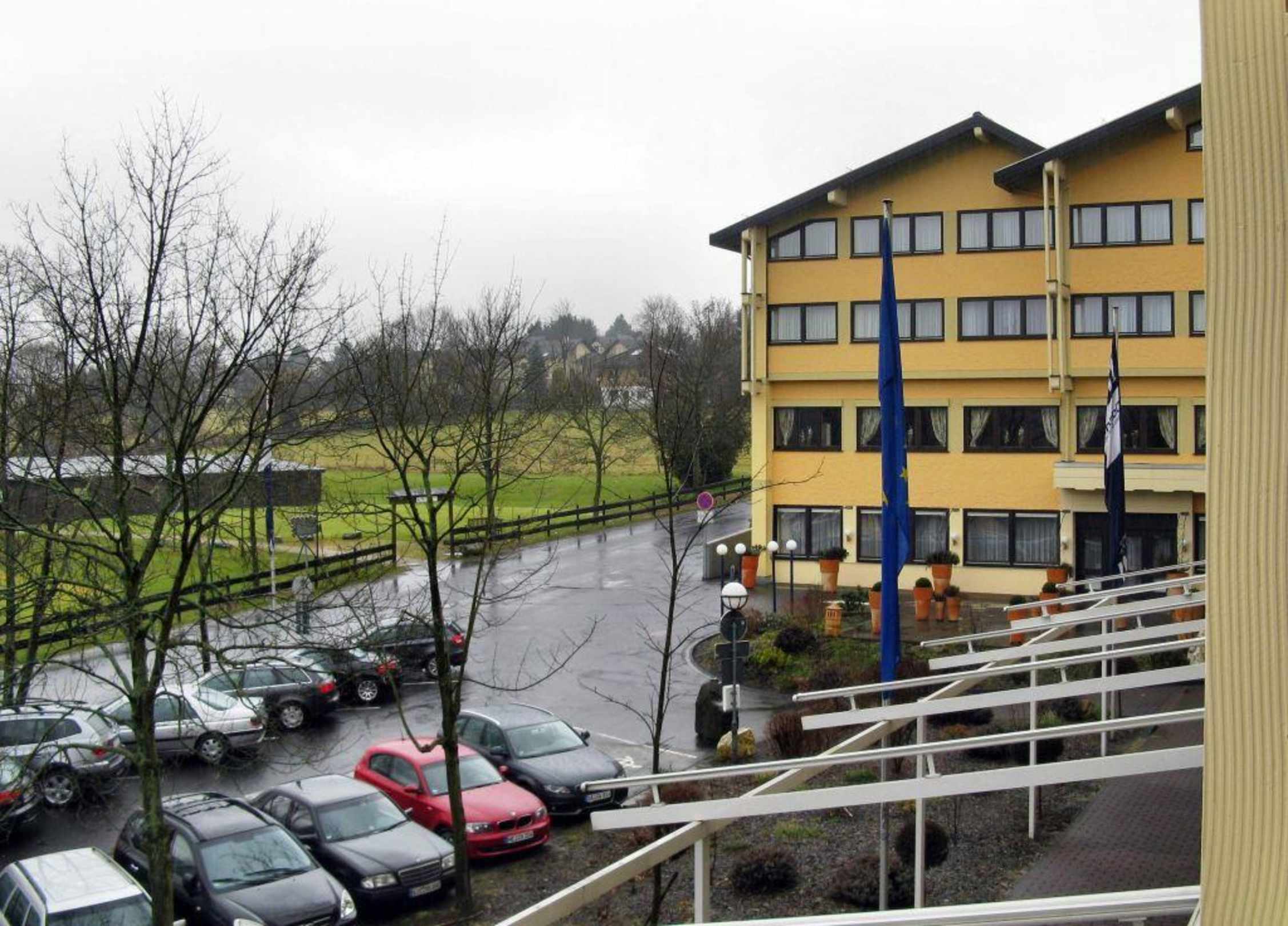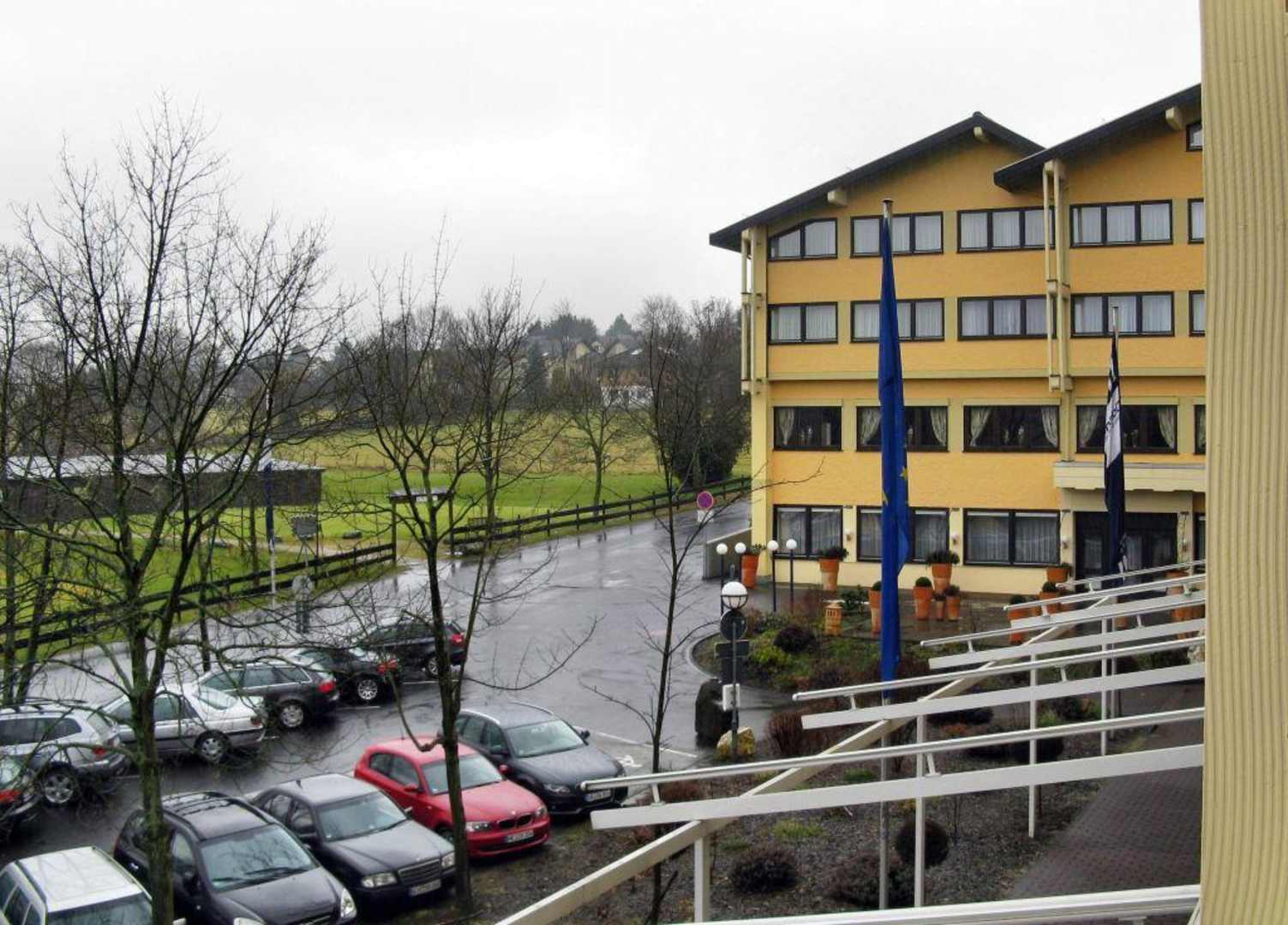 Vom Zimmer der ersten Etage, auf den vorderen Eingangsbereich des Hotel Dorint.
