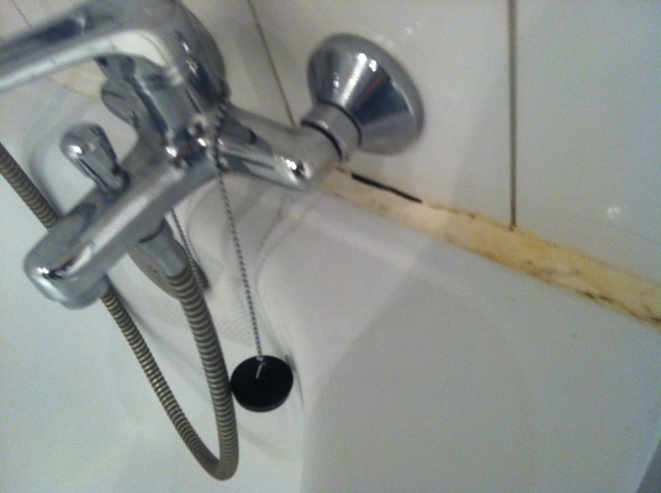Im Badezimmer sind die Silikonfugen unansehnlich und z.T. mit Schimmelansatz, Sanitäre Ausstattung lässt zu Wünschen übrig, teilweise Fliesen lose, notdürftige Reparaturen