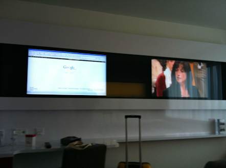 Blick auf die Wand in dieser 2 tv sind einer für das Internet und einer als Tv