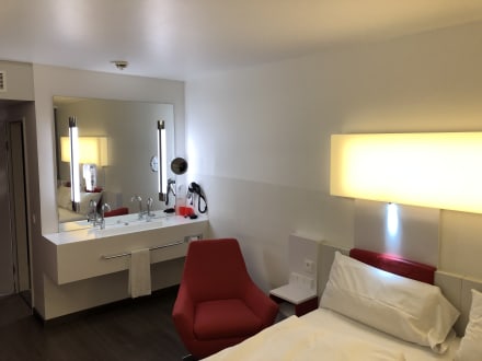 ZimmerIm Bad gibt es nur eine kleine Becken zum Hände waschen. Ein großes Waschbecken für die Morgentoilette ist im Zimmer integriert.