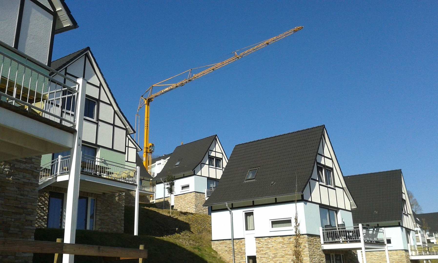 Ferienhäuser. Kran im Hintergrund