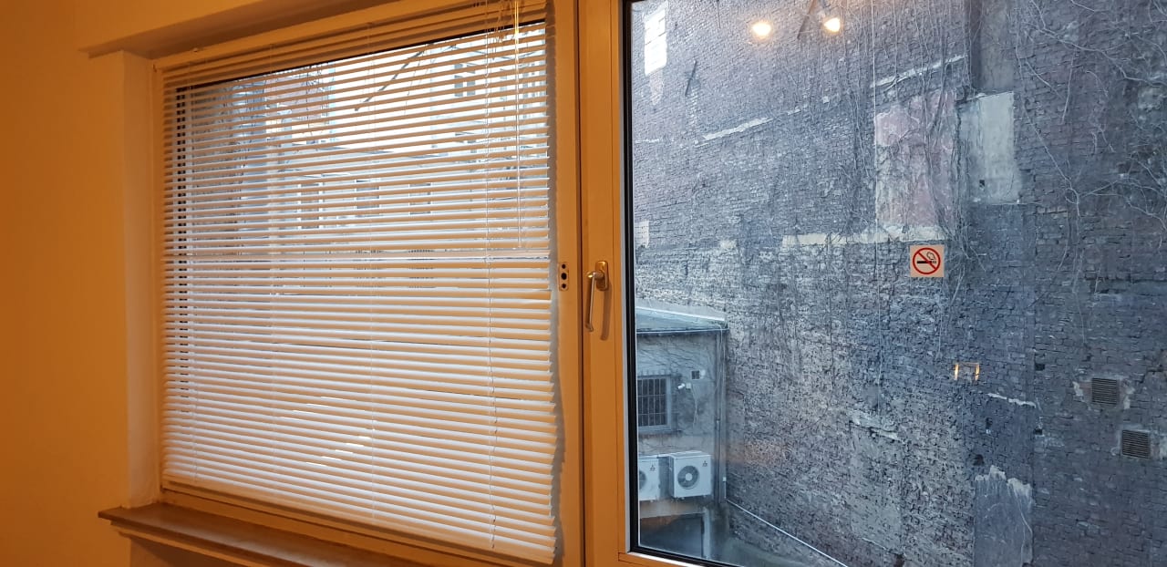 Defekte Fenster und Jalousien.