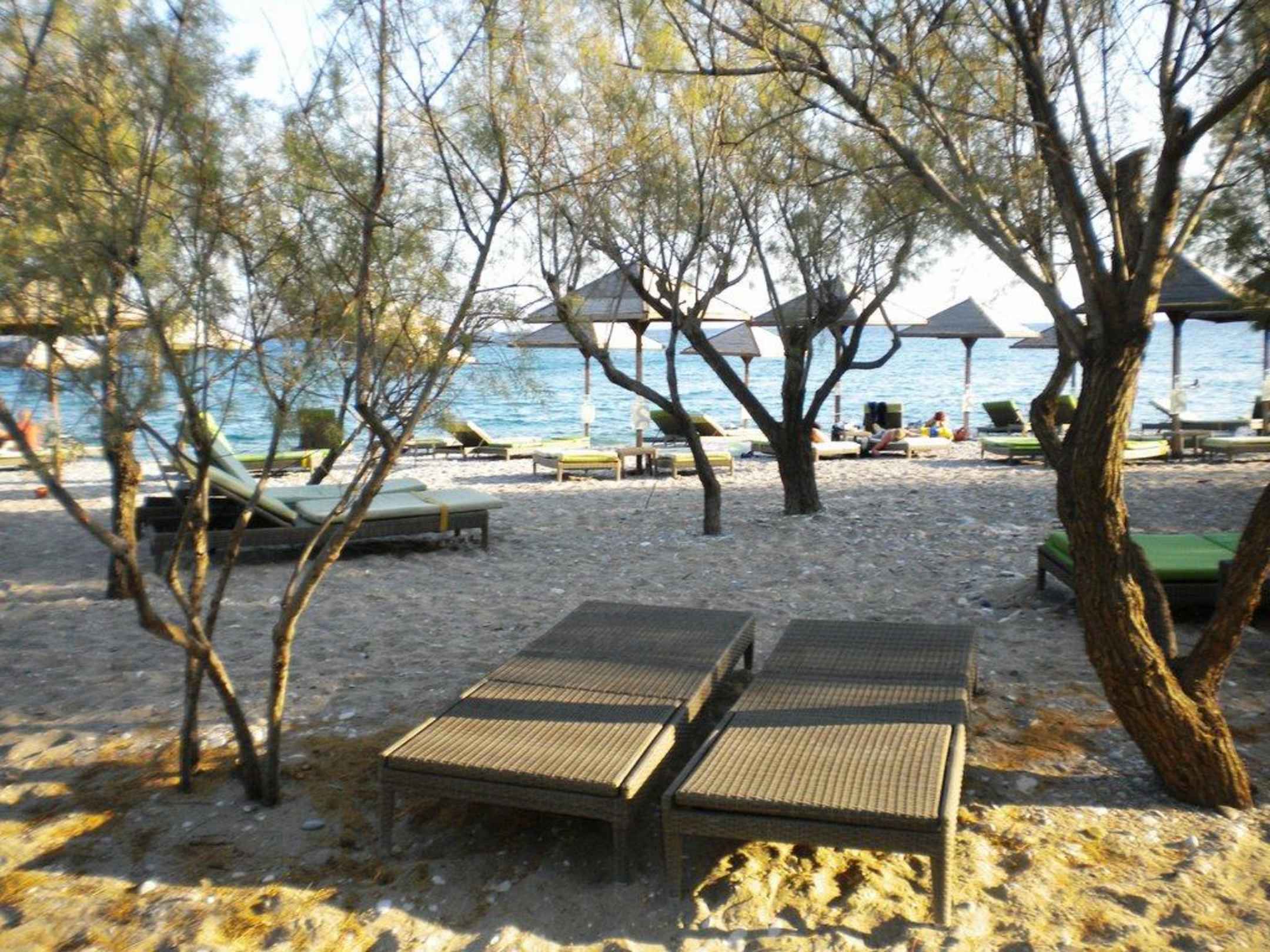 StrandSehr schöner Strand mit Rasen und Bäumen und zuwenig Liegen