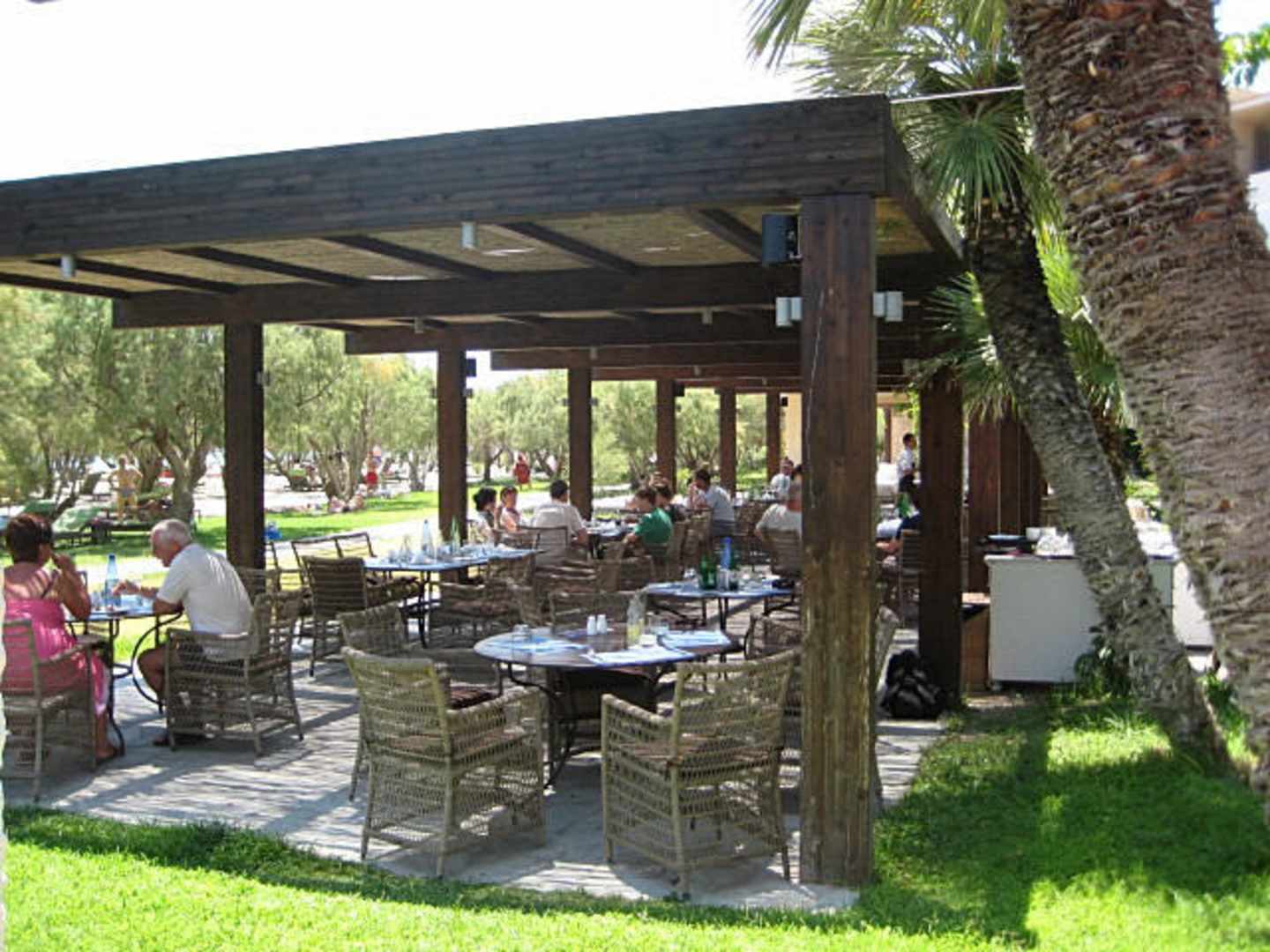 parte esterna del ristorante, vicino ai tamerici della spiaggia.