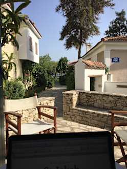 Bilder des sogenannten Village neben dem Hotel - etwas teurere Räume in kleinen Häusern im Inselstil, dafür wunderschön, inklusive Plaza, Kafenion und Kirche etc.