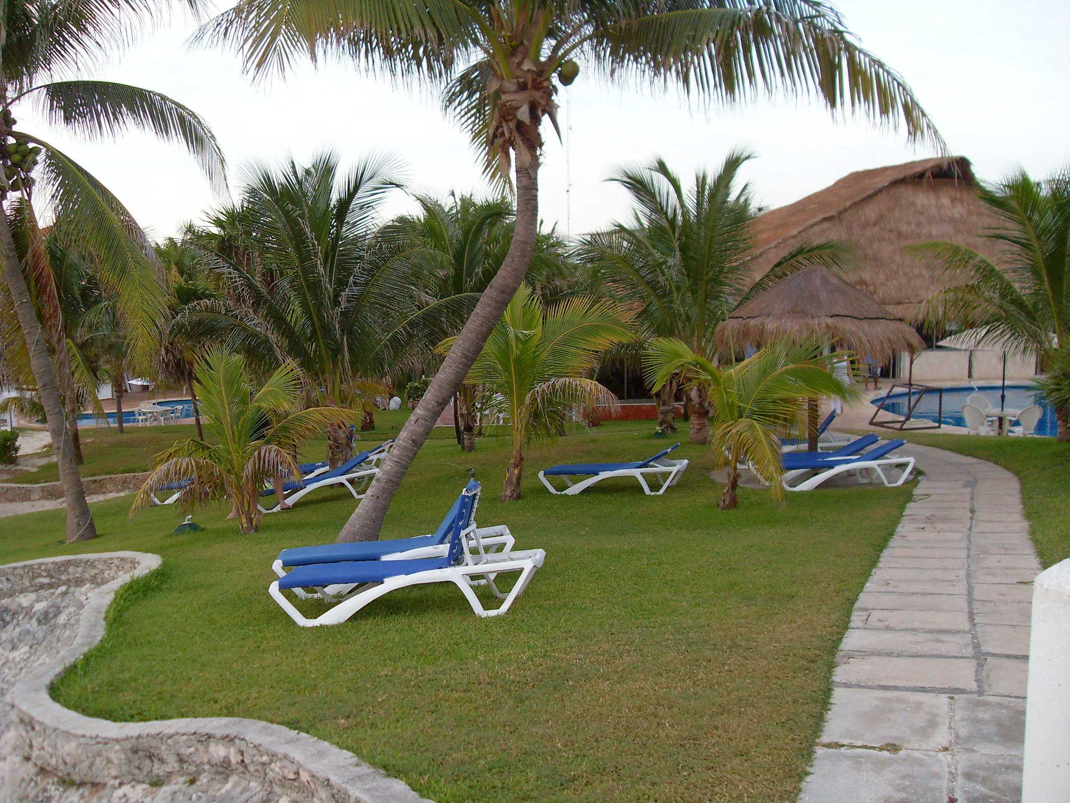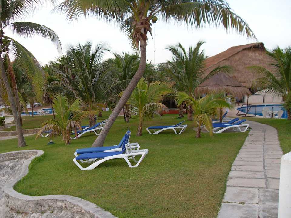 Garten + im Hintergrund rechts Pool+Restaurant