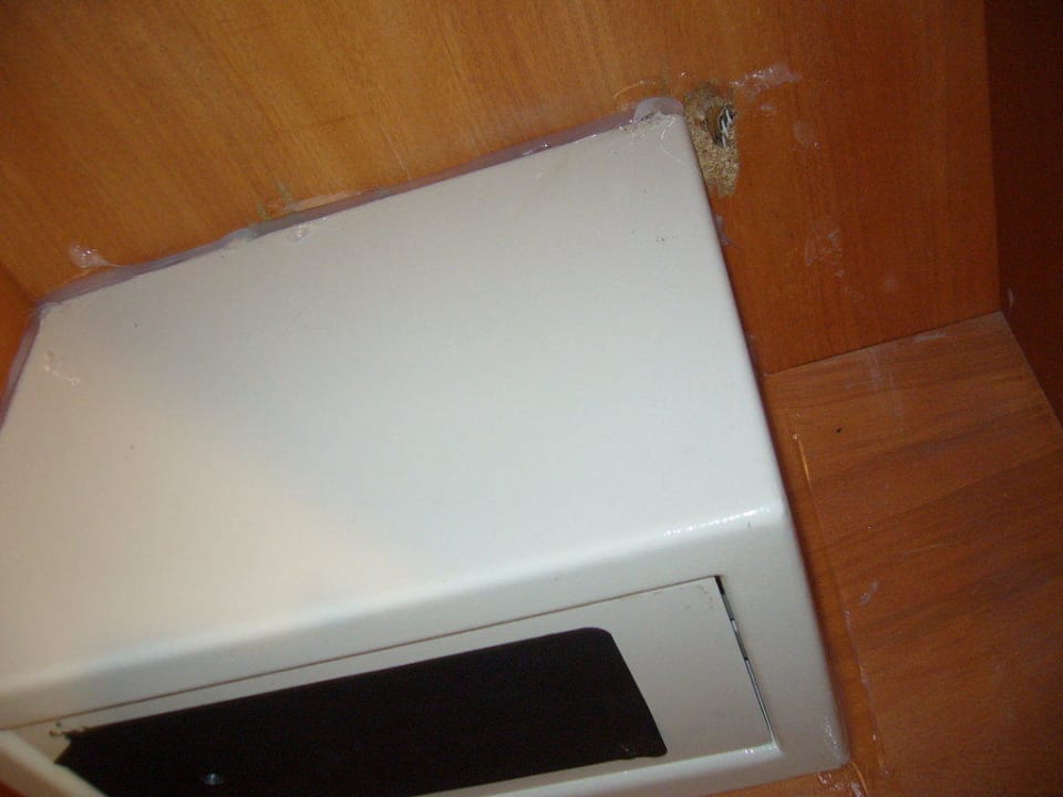 Safe mit Silikon in den Schrank eingeklebt.