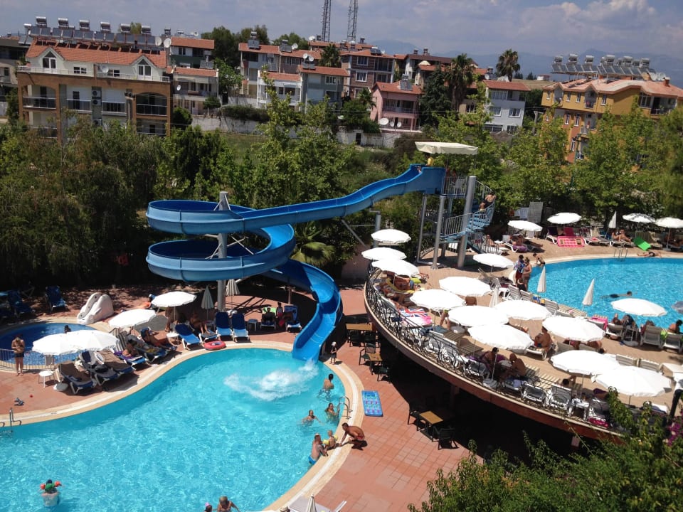 Unterer und oberer Pool mit Rutsche und Poolbar