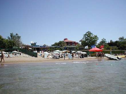 Statt Dosistrand zur Lindabar. Liegen und Schirme Frei. Gleich neben Asteria-Hotel