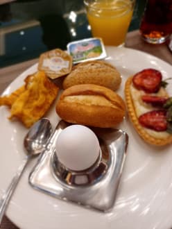 Frühstück mit viel Auswahl .... Kalte und warme Speisen