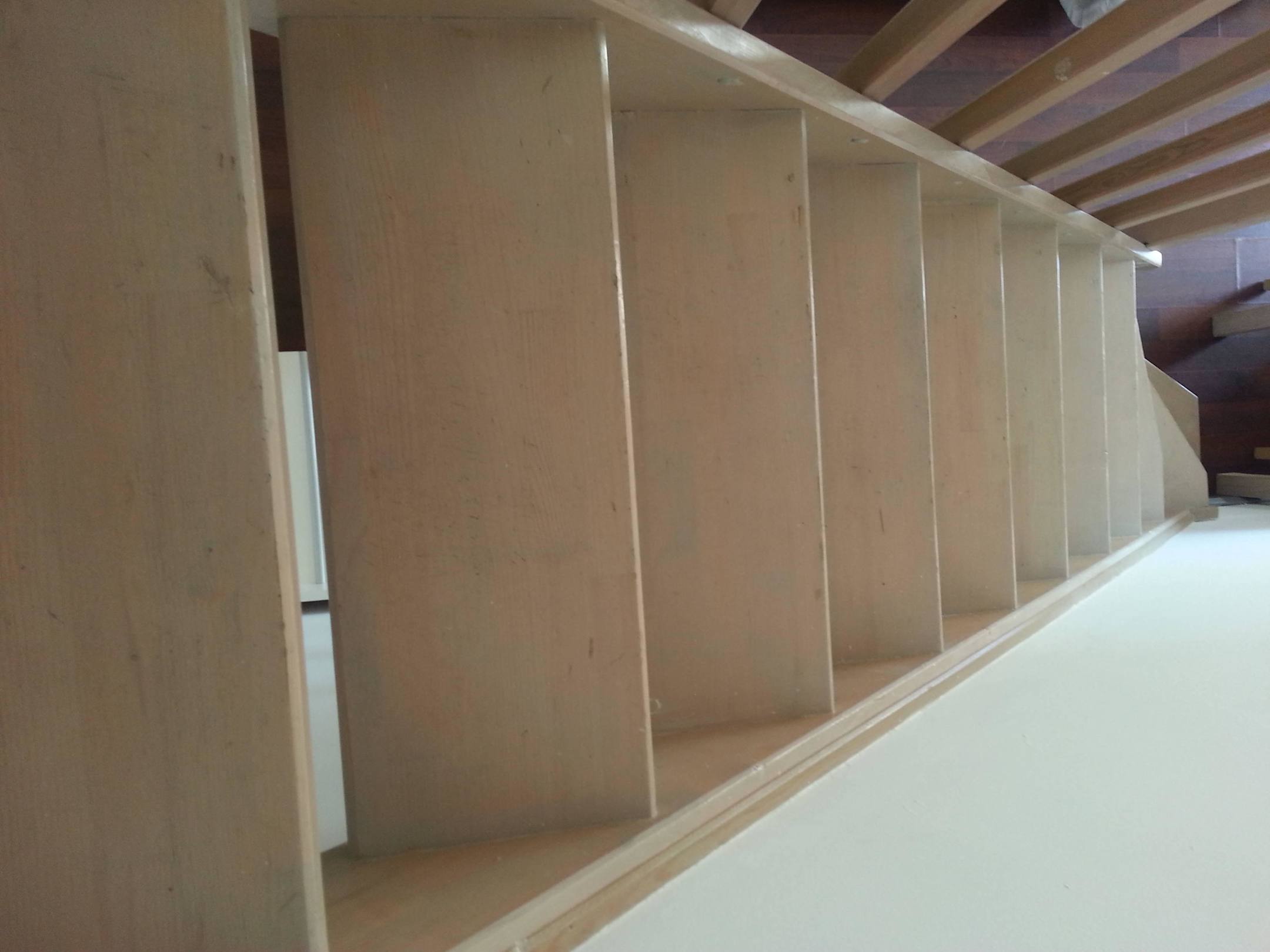 extrem eng und steil, schwierig mit dem Koffer zu bewältigen und für jüngere Kinder meiner Meinung nach gefährlich, da auch noch zwischen den Stufen offen. Oben Kindergitter zum Schutz.