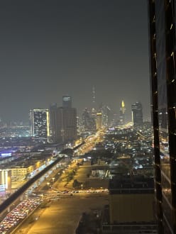Aussicht von Pool auf die Stadt bei Nacht