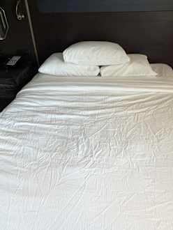 Angeblich frisch gemachtes Bett direkt beim Bezug des Zimmers.