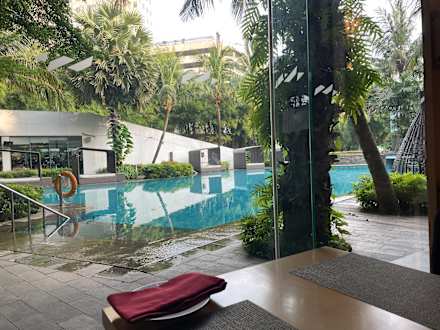 PoolEine Oase der Ruhe inmitten der Hektik Jakartas. Der Pool ist riesig, man sieht hier nur einen Ausschnitt.