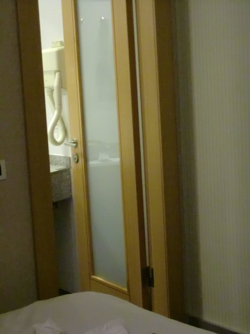 Kleines Zimmer - Bett ragt in Türrahmen zum Bad
