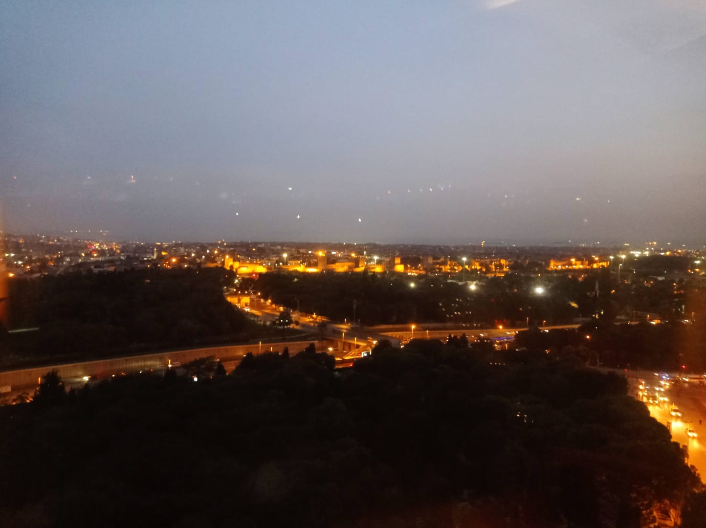 Blick aus unserem Zimmer auf Stadtmauer und Stadtzentrum.