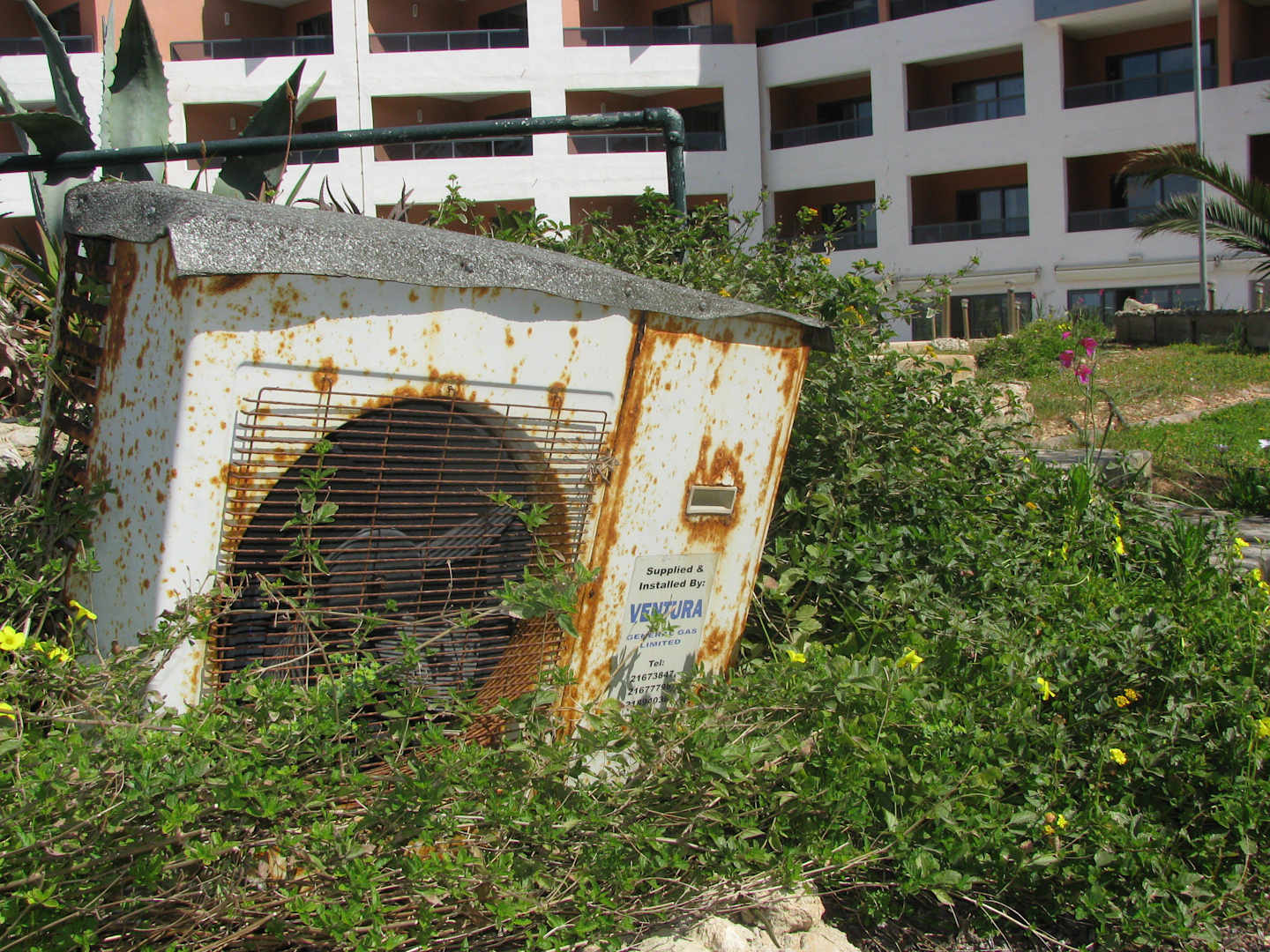 Entsorgte Klimaanlage im Garten