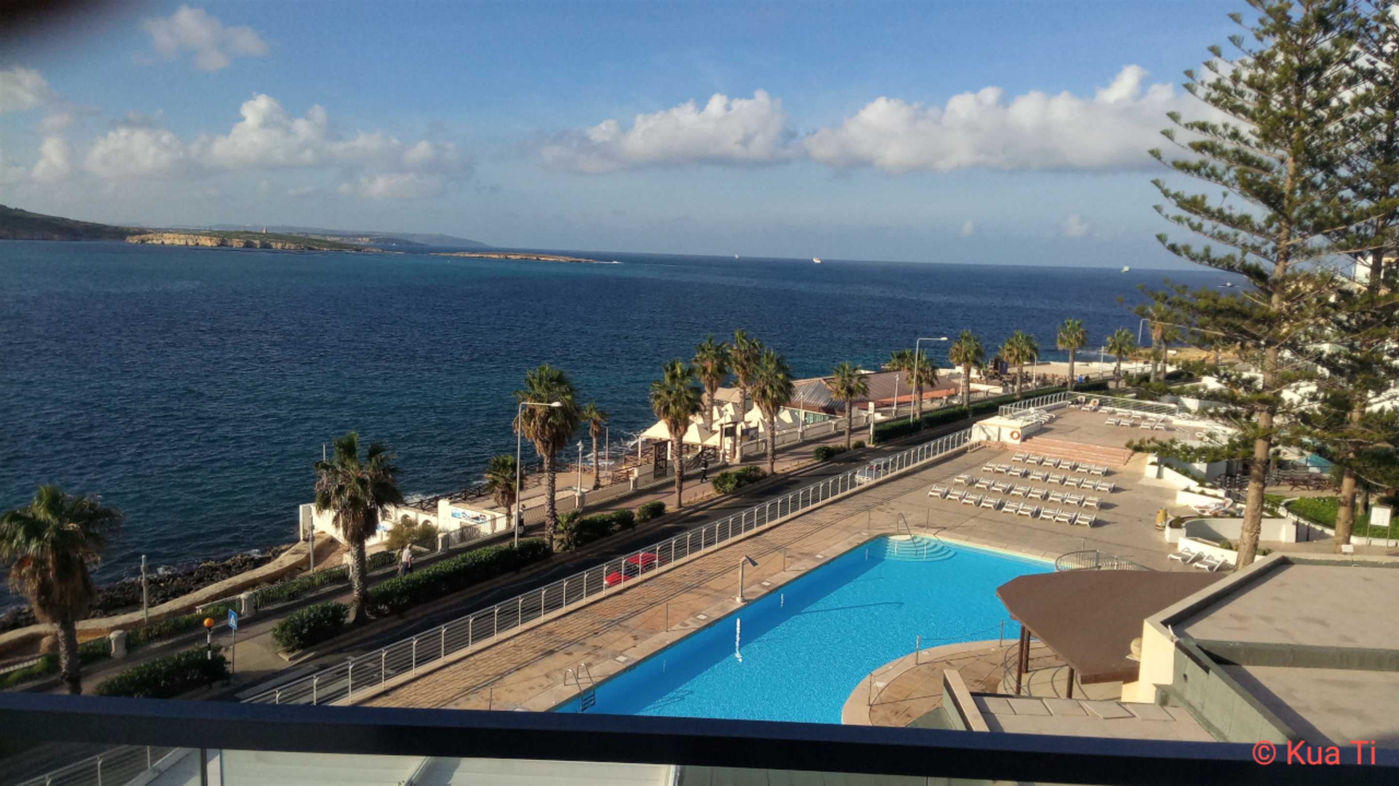 AusblickBlick über den Poolbereich 1 bzw die Uferpromenade Richtung Comino