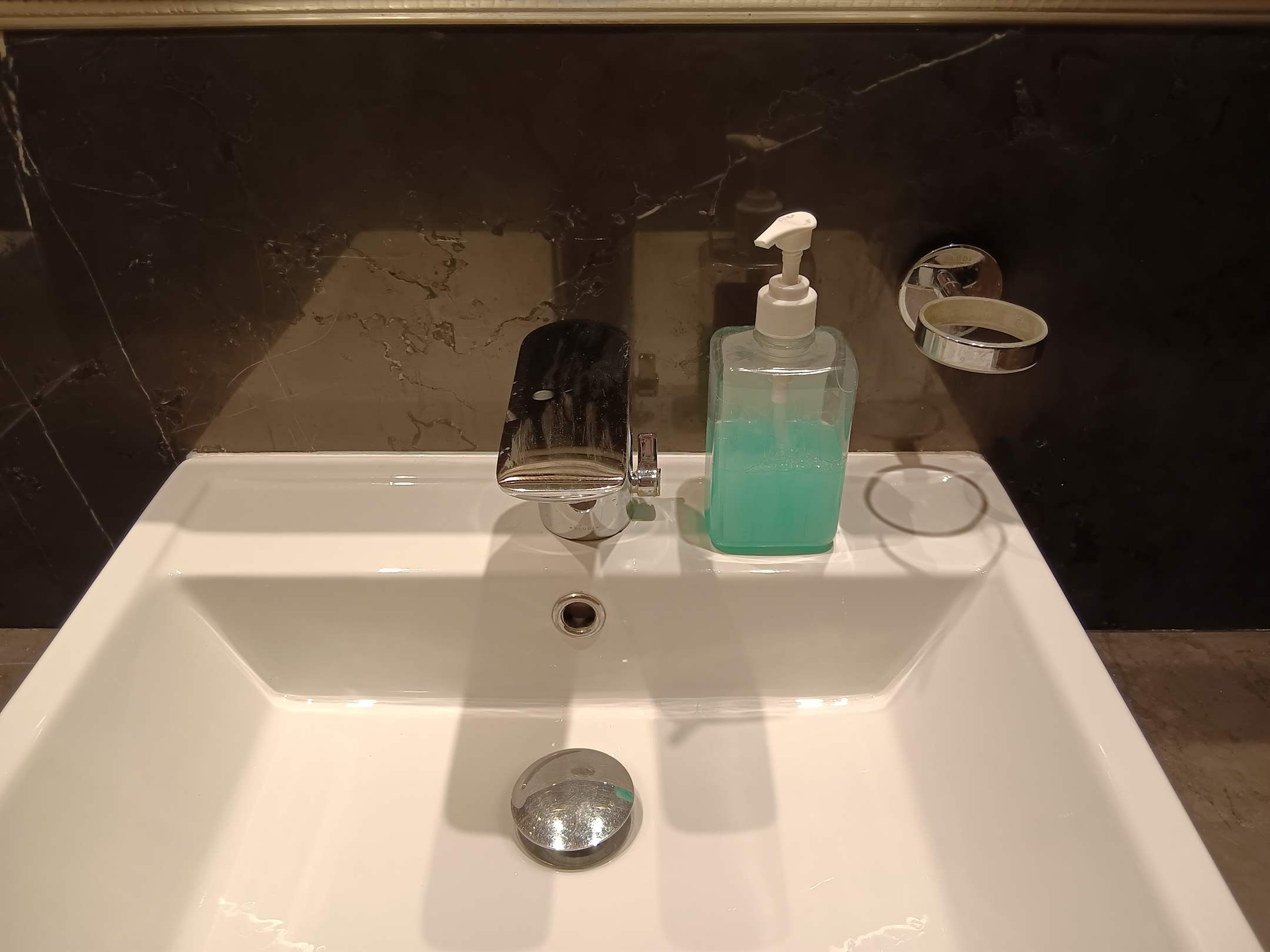 Toilette im Lobby Bereich. Kaputte Armaturen. Auch im Zimmer. Händedesinfektion leer.