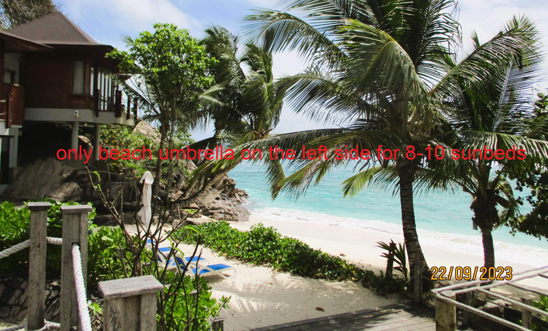 only beach umbrella on the left side for 8-10 sunbeds