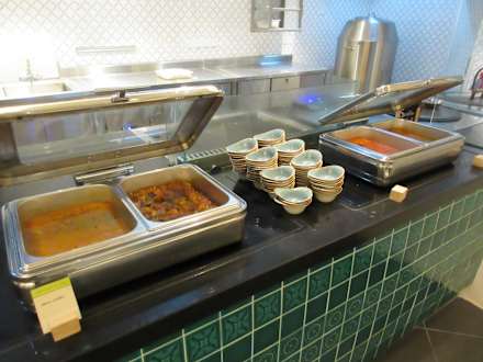 Blick ins Frühstücksrestaurant und aufs Buffet.