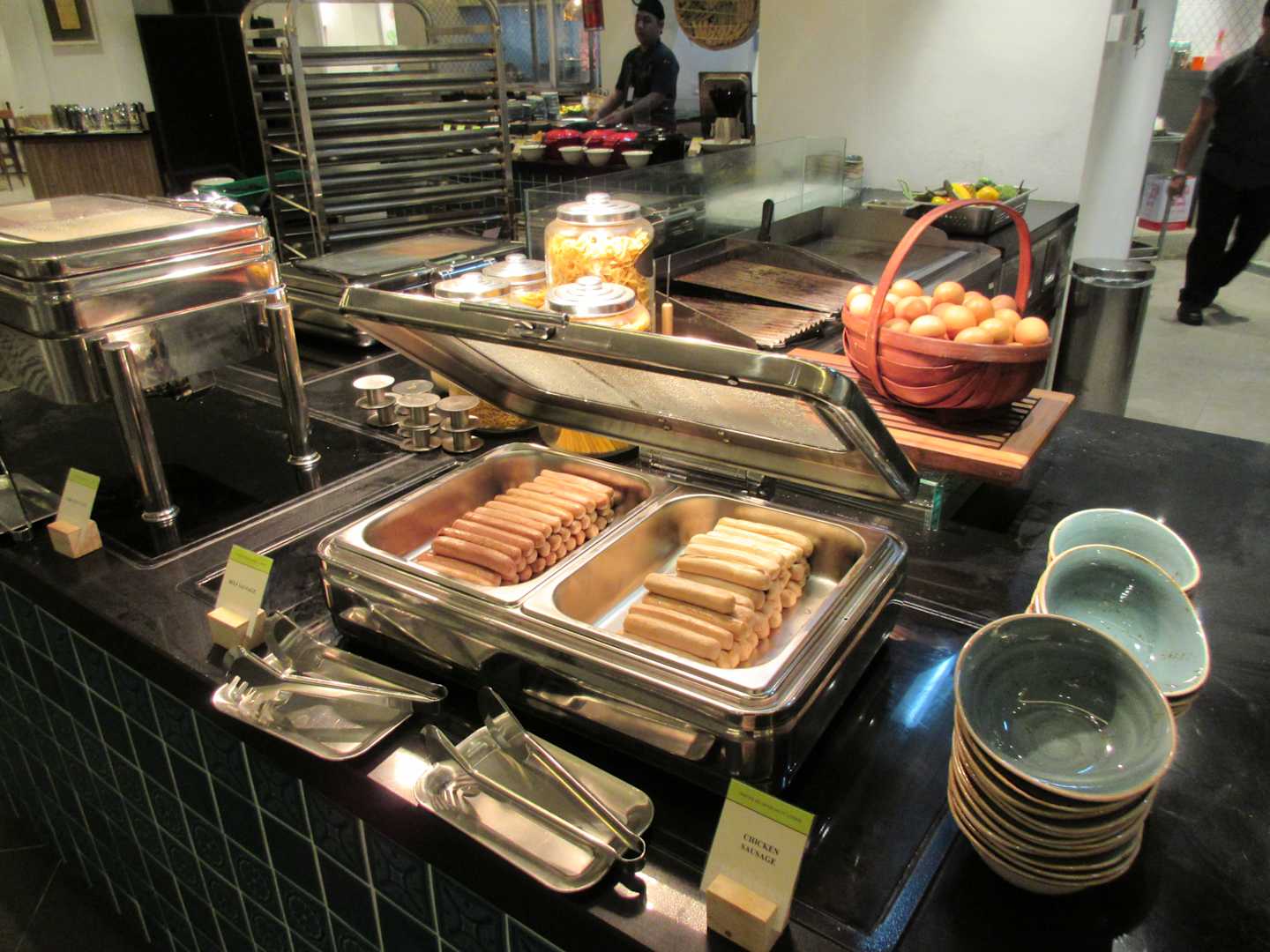 Blick ins Frühstücksrestaurant und aufs Buffet.