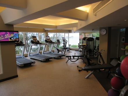 Gut eingerichtetes Fitnessstudio.