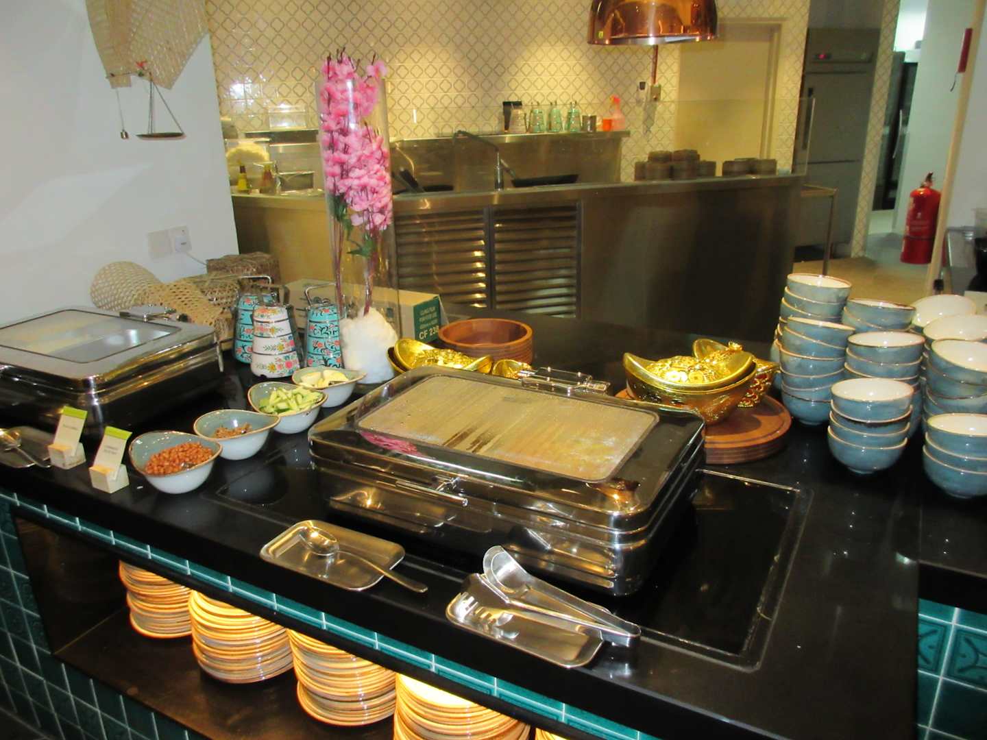 Blick ins Frühstücksrestaurant und aufs Buffet.