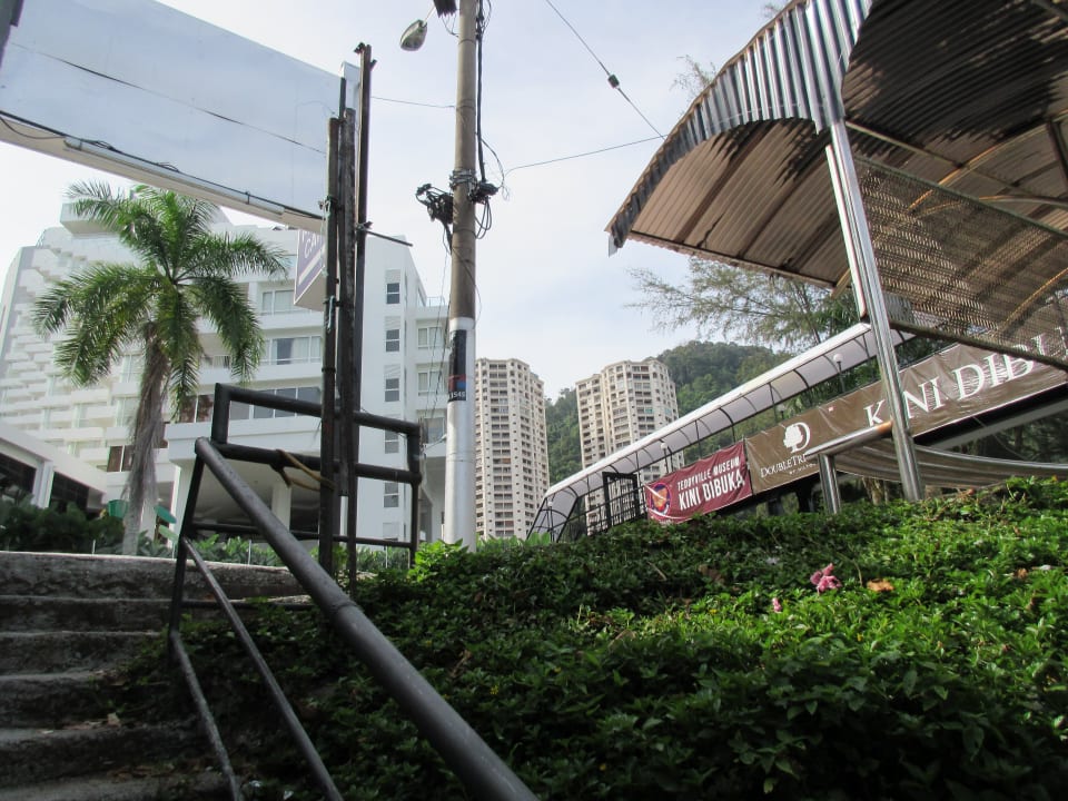 Brücke vom Hotel über die Straße und Treppe runter zum Stran