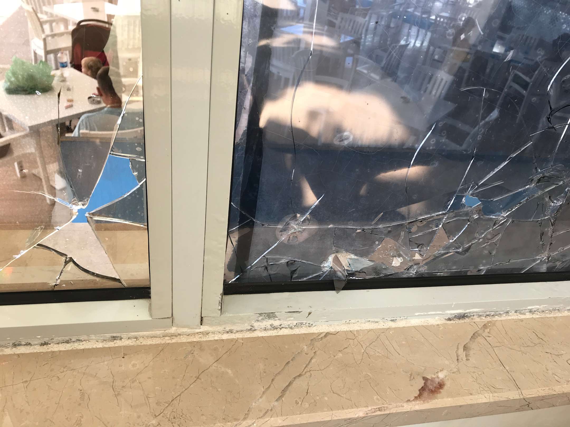 Poolbar! Dart wird vor den Scheiben der alten Rezeption gespielt.