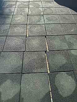 Am Spielplatz wurden Matten verlegt allerdings nicht verklebt wie es üblich ist dementsprechend tun sich Rillen auf in welche die Kinder leicht beim toben spielen umknicken können.