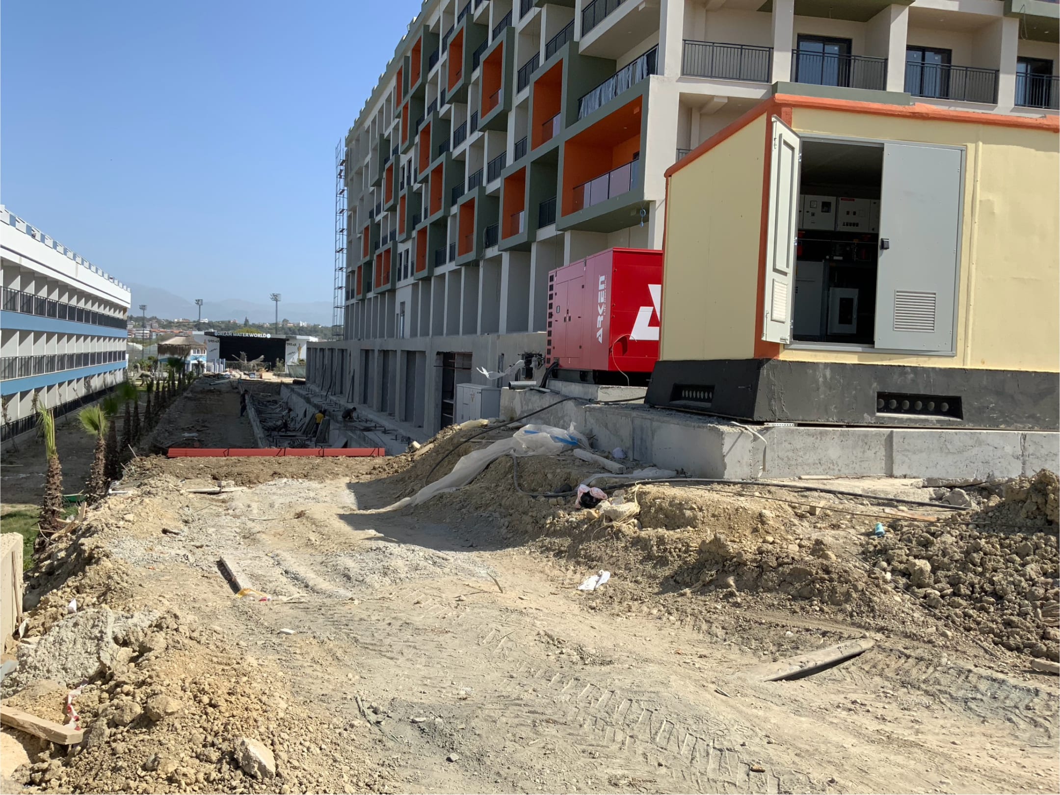 Westseite,unten der Außenpool für die Swim-up Zimmer noch in Fertigstellung….