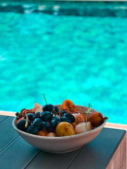 Frisches Obst, Gutes Eis und tolle Cocktails direkt an der Liege!