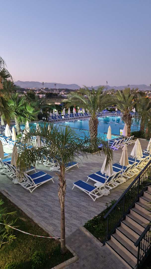 Von der Terrasse Blick auf einen Pool