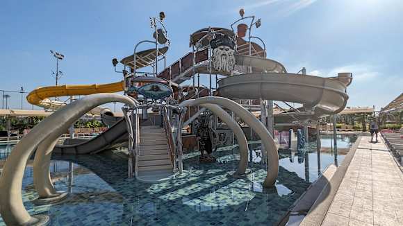Der Pool mit Rutschen für die ganz Kleinen. Wassertiefe bis 0,40 cm.
