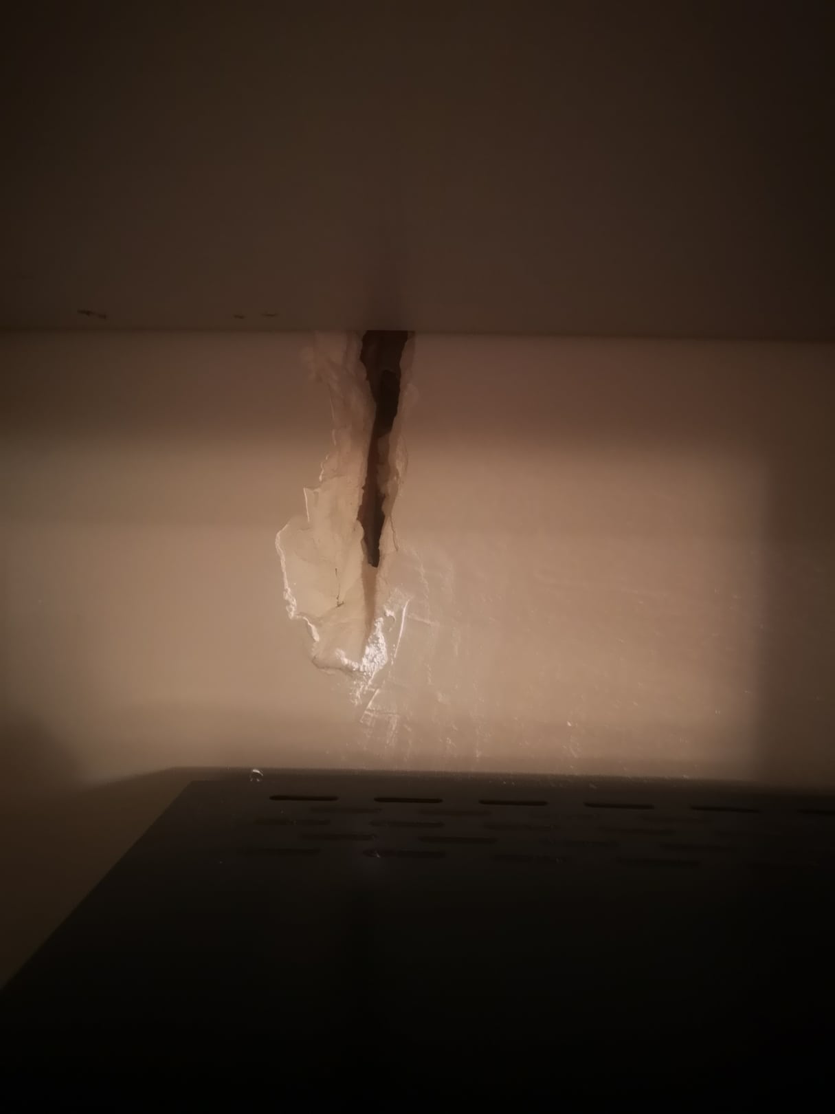 Offener Versorgungsschacht im Kühlschrankgehäuse sichtbar