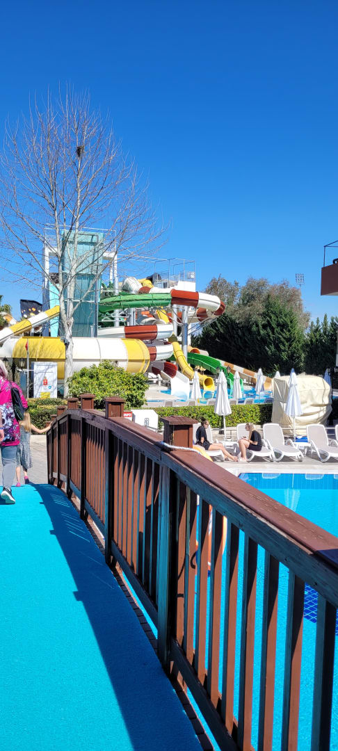 Brücke zu den Rutschen, dem Kinderpool, Bühne usw.