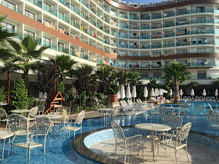 Sicht auf das Hotel vom +18-Pool aus